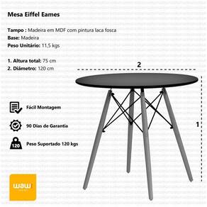 Modelo: Mesa Eiffel Eames Base Madeira Preta 120cm Tampo: Madeira em MDF Base: Madeira Diâmetro: 120 cm Altura Total: 75 cm Quantidade por caixa: 1 Peso Unitário: 11,5 kgs