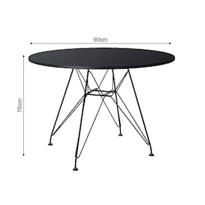 Mesa Eiffel Redonda 90Cm Tampo De Madeira Preto Com Base De Ferro Preto - Cor: Preto