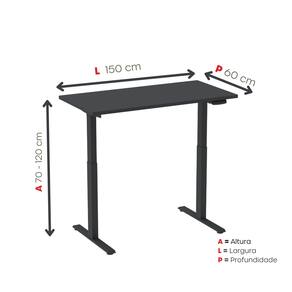 Mesa Elétrica com Regulagem de Altura 150cm(L) Preto -
