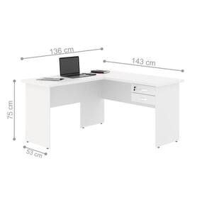 Mesa Em L Com Gaveteiro Carper Branco A Mesa possui um designer que deixará seu ambiente ainda mais elegante. MDP BP ou EUCAPRINT 15 mm com Tampo 30 mm.