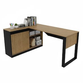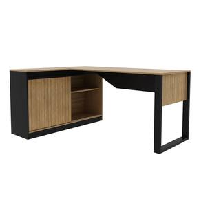 Mesa em L com Nicho Armário e Porta Correr Me4201 Amêndoa/Preto - Marrom