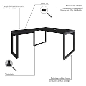 Mesa Em L Diretor 150x160x75cm Yon Preto Tx/ Preto Tx/ Sobre o ProdutoMesa em L Diretor 150x160x75cm Yon YOML7150 çoDescrição do Produto:A mesa em L Yon YOML7150 possui dimensões generosas, combinando funcionalidade com o design industrial, ideal para criar uma estação de trabalho eficiente e estilosa. O tampo desta mesa é engrossurado em 40mm e as bordas possuem acabamento em fita de PVC de 01mm, proporcionando durabilidade e uma superfície muito resistente. Os pés são feitos em tubos de aço 30x50mm, conferindo estabilidade, robustez e uma imponente qualidade. Sua combinação de materiais e proporções bem pensadas a tornam uma opção de escolha versátil e elegante para ambientes corporativos ou home linha Yon é uma fusão elegante entre o estilo industrial e o contemporâneo. Com linhas limpas, materiais robustos e detalhes sofisticados, essa coleção é perfeita para quem busca um ambiente moderno e funcional. Os móveis desta linha oferecem uma versatilidade notável, adaptando-se a diversos ambientes e necessidades, permitindo a criação de composições únicas e personalizadas. sendo a escolha ideal para quem busca qualidade e estilo em um só Inclusos:1 Mesa LDimensões dos Produtos:Mesa em L Diretor 150x160x75cm Yon YOML7150 ço: 150 x 160 x 75 cmInformações Logísticas (Comp. X Prof. X Alt.) 154 x 74 x 15 cm - Peso: 31,666 KgPeso Total: 31,666 KgObservações:Não acompanha acessórios decorativos. Imagens meramente ilustrativas.Informações Técnicas / Características:- Cor do Produto: ço- Cor do Predominante: Revestido- Marca: Metalig- Modelo: YOML7150- Linha: Yon- Material: Mdp- Material da Estrutura / Pés: Aço- Acabamento: BP- Escala de Brilho: Fosco- Fita de Borda: Pvc - Possui Gavetas: Não - Possui Pés: 3- Pés Niveladores: Sim - Acabamento Estrutura: Epóxi-Pó- Formato: Em L - Suporta Até (kg): 100kg- Comprimento: 150cm- Profundidade: 160cm- Altura: 75cm - Peso Lí.: 30,125Kg- Recomendações de Uso, Manutenção e Limpeza: Para a limpeza, utilize flanela seca ou pano macio levemente umedecido em água. Utilize um pano seco em seguida. Evite com produtos químicos (solventes, thinner, acetona, etc) e não utilize nenhum tipo de esponja de aço.- Necessita de Montagem: Sim / Acompanha Manual de Montagem- Complexidade da Montagem: Média: pode ser montado por mais de uma pessoa e/ou necessite de maior conhecimento para montagem.- Garantia: 01 ano Marca: Compace | Modelo: YOML7150 | Quantidade máxima de pedido: 1 | Necessita montagem: Sim | É em formato de L: Sim | Comprimento: 150 cm | Altura: 75 cm | Largura: 160 cm | Profundidade: 160 cm | Material da estrutura: Aço | Produto: Mesa | Cômodo indicado: Escritórios | Cor: Multicolorido | Tonalidade: Multicolorido | Coleção: Industrial | Requer Baterias: Não | Certificação Externa: | Componentes inclusos: Manual de montagem e kit acessórios | Preço de tabela: | Fabricante: Compace | do Modelo: YOML7150 | de Caixas: 1 | de Itens: 1 | da Peça: YOML7150 | Baterias são necessárias?: false | Palavras-chave de Pesquisa: Não Aplicável | Quantidade de itens: 1 | Principais Características do Produto 0: Escritório | Principais Características do Produto 1: BP Acetinado | Principais Características do Produto 2: Estrutura de aço | Acabamento do móvel: BP Acetinado | Peso do item: ;unit=kilograms | Dimensões do item P x L x A: width#value=150;depth#unit=centimeters;height#value=75;height#unit=centimeters;depth#value=160;width#unit=centimeters | Dimensões do Produto (A x L x C), sem a caixa de embalagem: | Coleção de Antiguidade: | Duração da Garantia: | Tipo de Mesa: | Montagem: | Tipo de Garantia: | Material: | País de Origem: | Recursos da Escrivaninha: | Recursos da Mesa: | Produto personalizado: | Base da Mesa: | Desing da Escrivaninha: | Móvel Dobrável: | Temas de Estampas: | Motivo de Isenção Anvisa: | Shape: | Nr. do Lote do Produto: | de Assentos: | Altura da Mesa: | Data de validade Anvisa: | Tamanho Do Pacote: | Formato da Escrivaninha: | Código Anvisa do Produto: | Formato do Espelho: | Funcionalidades: | Qtd. de Produto no Lote: | Estilo: | Quantidade: Cor: Preto TX/
