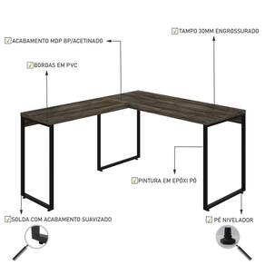 Material: Mdp | Acabamento: Perffect Acetinado | Escala de Brilho: Fosco | Fita de Borda: Pvc | Material da Estrutura: Aço | Acabamento da Estrutura: Epóxi-Pó Texturizado | Cômodo indicado: Escritório | Produto: Mesa | Tonalidade: Multicolorido | Fabricante: Compace | Comprimento: 135cm | Largura: 150cm | Altura: 75cm | Cor: Multicolorido | Coleção: Industrial | Requer Baterias: | Certificação Externa: | Componentes inclusos: Manual de montagem e kit acessórios | Preço de tabela: 355.88400000000001 | Compace: do Modelo | 1: da Peça | KUML6135: | Coleção de Antiguidade: | Base da Mesa: | Produto personalizado: | Recursos da Mesa: | Tipo de Garantia: | País de Origem: | Desing da Escrivaninha: | Tipo de Mesa: | Móvel Dobrável: | Montagem: | Recursos da Escrivaninha: | Marca: | Duração da Garantia: | Dimensões do Produto (A x L x C), sem a caixa de embalagem: | Altura da Mesa: | Tamanho Do Pacote: | Formato do Espelho: | de Assentos: | Temas de Estampas: | Motivo de Isenção Anvisa: | Nr. do Lote do Produto: | Data de validade Anvisa: | Formato da Escrivaninha: | Shape: | Código Anvisa do Produto: | Qtd. de Produto no Lote: | Estilo: | Funcionalidades: | Quantidade: Cor: Carvalho Dark /