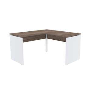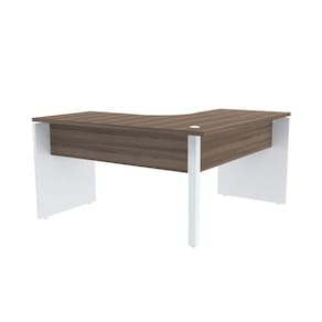 Mesa Em L P/ Escritório 155X155 Pandin P25 - Walnut/Branco - Marrom Chocolate