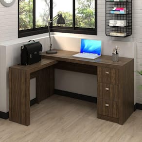 Mesa em L ME4101 é a personificação desse conceito, pois além do formato dinâmico ela ainda conta com 3 gavetas de corrediças metálicas e amplo espaço interno para guardar seus materiais. Tudo fabricado em MDP com acabamento de qualidade, agregando resistência e durabilidade ao produto. E olha, não é exagero dizer que ela possui design moderno e encantador!