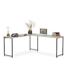 Mesa em L sem Prateleira Office em Mdf Estilo Industrial KLM Store - Preto | Off White