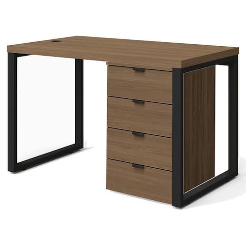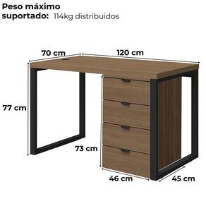 Mesa para Escritório com Gaveteiro Frame, ideal para ambientes que exigem praticidade, organização no estilo industrial. Estrutura 100% MDP (tampo mesa 40mm/ gaveteiro 15 mm) com acabamento em pintura BP, pés metálicos (pintura epóxi fosco) e sapatas niveladoras. Mesa equipada com passa fios com tampa embutida, e gaveteiro composto por 4 gavetas com corrediças telescópicas. Estes produtos serão entregues em 03 volumes.