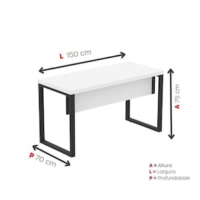 Mesa Escritório 1500x700x750mm M150-70pe40tub Branco-preto