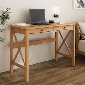 A Escrivaninha em X Estruturada Madeira Maciça Freijó Adrian combina design rústico-industrial e funcionalidade em um móvel sofisticado e versátil. Feita em madeira maciça, sua estrutura robusta com acabamento em Freijó valoriza os veios naturais da madeira, trazendo um toque acolhedor e atemporal ao ambiente.