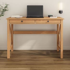 Com duas gavetas espaçosas, A Mesa de Escritório Rústico Industrial Madeira Maciça Adrian oferece praticidade para manter materiais organizados, enquanto seu tampo amplo e resistente acomoda notebooks, livros e itens essenciais do dia a dia. As laterais com travamento em "X" garantem estabilidade e um visual marcante, perfeito para quem busca um espaço de trabalho elegante e funcional.