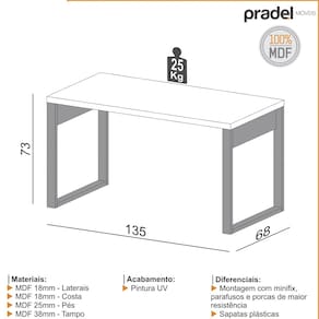 Conteúdo da embalagem: 01 MESA ESCRITORIO
