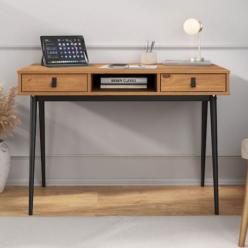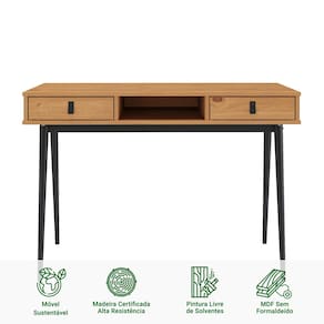 Quantidade de Prateleiras: 0 Quantidade de Portas: 0 Quantidade de Gavetas: 2 Quantidade de Nichos: 1 Possui Rodízio: Não Possui Gavetas: Sim Estilo: Moderno Puxadores: Couro Ambiente Principal: Quarto ou Escritório Precisa de Montagem: Sim Sistema de Montagem: Minifix / Cavilhas / Parafusos. Complexidade da Montagem: Fácil Volumes: 01 Garantia do Fabricante: 12 meses Montagem: Recomendamos que seja feita por um profissional.