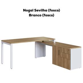 Conjunto de Mesa e Balcão Concept para Escritório alia funcionalidade e organização para ambientes de trabalho. Estrutura em MDP 15 mm (tampo da mesa 25 mm) com acabamento em pintura BP. Possui porta com dobradiça metálica, 3 gavetas (uma com trava por chave e um gavetão para pasta suspensa), base metálica em aço carbono e sapatas reguláveis com travessa antiempenamento. O balcão flex permite montagem à direita ou esquerda, conforme preferência. Entregue em 3 volumes.