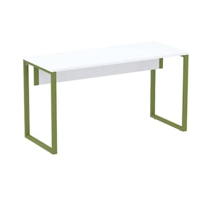 Mesa Escritório P25 Tub Pandin 120 Cm (larg) Tampo Mdp Branco Pé Aço Tubular Verde Mirô