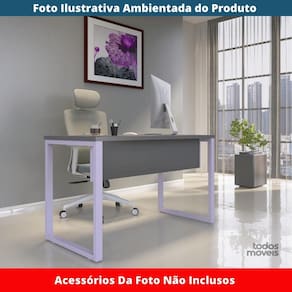 Mesa Escritório P25 TUB Pandin 120 cm (larg) Tampo MDP Grafito Pé Aço Tubular Lilás - Cinza