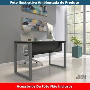 Mesa Escritório P25 Tub Pandin 120 Cm (larg) Tampo Mdp Preto Pé Aço Tubular Grafito