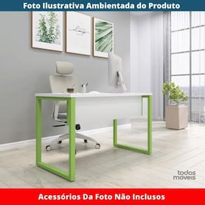 Mesa Escritório P25 Tub Pandin 134 Cm (larg) Tampo Mdp Branco Pé Aço Tubular Verde Mirô