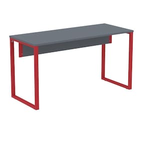 Mesa Escritório P25 Tub Pandin 134 Cm (larg) Tampo Mdp Grafito Pé Aço Tubular Vermelho