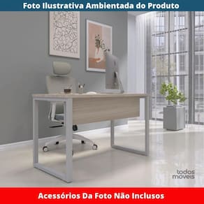 Mesa Escritório P25 TUB Pandin 170 cm (Larg) x 70 cm Prof Tampo MDP Casablanca Pé Aço Tubular Cinza - Bege
