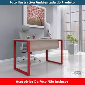 Mesa Escritório P25 TUB Pandin 170 cm Larg x 70 cm Prof Tampo MDP Casablanca Pé Aço Tubular Vermelho - Bege