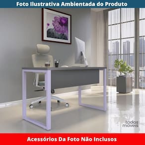 Mesa Escritório P25 Tub Pandin 170 Cm (larg) X 70 Cm (prof) Tampo Mdp Grafito Pé Aço Tubular Lilás