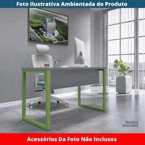 Mesa Escritório P25 Tub Pandin 170 Cm (larg) X 70 Cm (prof) Tampo Mdp Grafito Pé Aço Tubular Verde