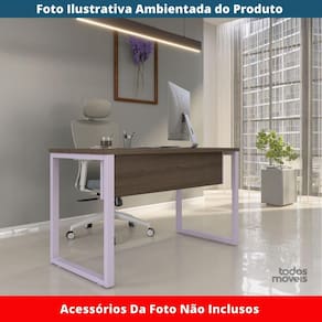 Mesa Escritório P25 TUB Pandin 170 cm (Larg) x 70 cm (Prof) Tampo MDP Walnut Pé Aço Tubular Lilás - Marrom