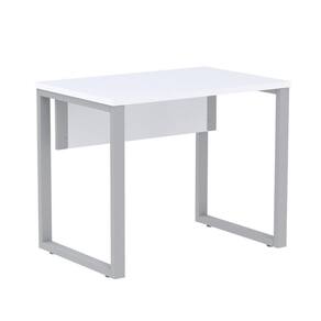 Mesa Escritório P25 Tub Pandin 90 Cm (larg) Tampo Mdp Branco Pé Aço Tubular Cinza