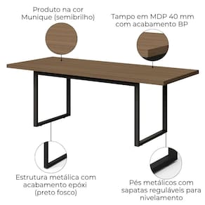 Materiais: Estrutura e pés metálicos, tampo em MDP.