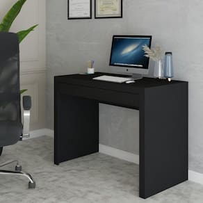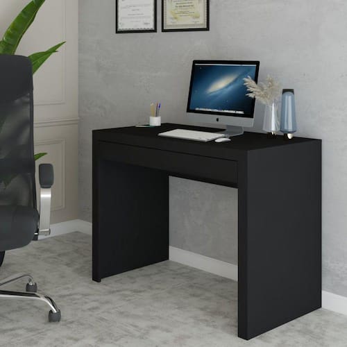 O(a) Mesa Escrivaninha 1 Gaveta Home Office Preto - Loja é produzido em MDP na escala de brilho Semi-Fosco, e possui um grau de dificuldade de montagem: Médio.