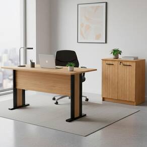 O conjunto ME4194XME4197 combina funcionalidade e um visual moderno para transformar seu ambiente de trabalho, oferecendo uma solução prática e eficiente para manter tudo organizado, sendo fabricado com estrutura em madeira MDP de 15 mm, tampo em MDP de 25 mm e revestimento em material BP, com acabamento traseiro no mesmo padrão de cor e material, a Mesa Escrivaninha ME4194 conta com pés em madeira MDP de 25 mm e sapatas reguláveis suportando até 12 kg, proporcionando uma solução funcional para manter o espaço de trabalho organizado, já o Balcão para Escritório ME4197 conta com 02 portas, sendo 01 delas com trava por chave, 01 prateleira interna com capacidade para até 12 kg, dobradiças em metal e puxadores em alumínio. NÃO ACOMPANHA CADEIRA NEM DEMAIS DECORAÇÕES. Este produto será entregue em 2 volumes.