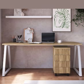 A Mesa Concept, é confeccionado em MDP com acabamento BP e aço, materiais que proporcionam resistência, estabilidade e durabilidade ao produto. A linha Concept traz funcionalidade, versatilidade e eficiência, características essenciais para o ambiente corporativo ou Home Office. Com inúmeras possibilidades, esta coleção oferece variedade de composições e sensação de espaço amplo e confortável para quem trabalha. Produto Montado: Sim Acabamento do Tampo: BP Acabamento dos Pés: Pintura Acompanha Manual de Instalação: Sim Ambiente Principal: Escritório codigo_ean: 7900288211781 Complexidade da Montagem: Média: pode ser montado por mais de uma pessoa e/ou necessite de maior conhecimento para montagem Cor: Nogal/Branco Cor da Base: Branco Cor do Produto: Nogal/Branco Cor do Tampo: Marrom Dobrável: Não Escala de Brilho: Fosco Espessura do Tampo: 25 mm Formato: Retangular Informações Complementares: As imagens são ilustrativas e as cores podem sofrer variações de tonalidade, conforme o ajuste de configuração do monitor, os objetos decorativos não estão inclusos. Itens Inclusos: 1 Escrivaninha, Kit Ferragens e Manual de Montagem Linha ou Coleção: Concept Manual de Montagem e Instalação: https://product-hub-prd.madeiramadeira.com.br/963577235/documents/74811457-2935-4177-848d-b225ba8380523123210307217545956590427.pdf Marca: Artesano Material da Estrutura: Aço Material do Tampo: MDP Material dos Pés: Aço Material Principal: MDP Modelo Infantil: Não Necessita Montagem: Sim Origem do Produto: Nacional Pés com Regulagem de Altura: Sim Peso: 26,25 kg Possui Acabamento na Parte de Trás: Não Possui Borda Arredondada: Não Possui Caixa de Tomada: Não Possui Espelhos: Não Possui Estante: Não Possui Gaveta para Pasta Suspensa: Não Possui Gaveteiro: Não Possui Passa Cabos: Não Possui Porta Objetos: Não Possui Portas: Não Possui Prateleiras: Não Possui suporte para CPU: Não Possui Suporte para Teclado: Não Possui Vidro: Não Recomendações de Uso, Manutenção e Limpeza: Limpar utilizando apenas pano umedecido com água, nunca utilizar produtos químicos ou abrasivos, pois estes danificam o revestimento do móvel. Sapatas Niveladoras: Sim Sistema de Montagem: Fixação é feita por parafusos, possibilitando a desmontagem do produto sem danificá-lo Suporta Até (kg): 30 kg Suporta Braço Articulado: Não