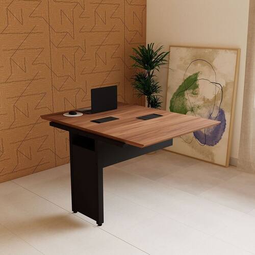 Mesa Escrivaninha 90cm Auxiliar Plataforma de Acoplar com Caixa de Tomada para Escritório Corporate Nogal/Preto - Marrom