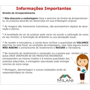A tonalidade da cor do produto pode variar de acordo a calibração de cores do seu monitor, a iluminação do ambiente ou sua percepção visual.