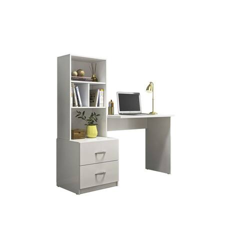 Mesa Escrivaninha C/ Colméia Organizadora Quarto Escritório Estudo Trabalho Computador Notebook 2 Gavetas 2 Prateleiras Cristal - Branco
