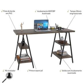 ColorSupplier: Carvalho Dark Preto | Model: Prisma | ProductContents: 1 mesa | Manual: Sim | MaterialFamily: MDP | Requere montagem: Sim | AssemblyRequired: Sim, a montagem é simples mas sugerimos a contratação do nosso de montagem (para os CEPs em | ProductLength: 60 | SizeDescription: 75 x 135 x 60 cm | Altura: 75 cm | Origem: | Material: MDP | Cor: Dark/Preto | ColorFamily: Ébano | ColorSimple: Ébano | Color: Ébano | SupplierSimpleName: Mesa Escrivaninha Cavalete 135cm Estilo Industrial Prisma C08 Carvalho DarkPreto - Mpozenato | OriginCountry: | ProductWeight: 23 | Peso: 23 kg | ProductInstructions: Produto para uso em ambiente interno, nao devendo ficar exposto ao sol, calor e umidade excessivos. | OriginState: PR | Gênero: Unissex | ProductHeight: 75 | Profundidade: 60 cm | Largura: 135 cm | ProductWidth: 135 | ProductWarranty: 90 dias após o