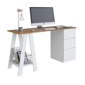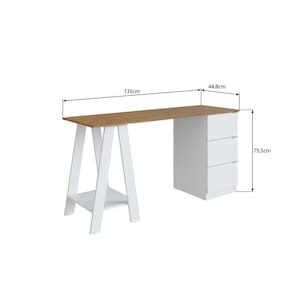 A Mesa Escrivaninha Self tem design moderno e leve, levando elegância ao ambiente. Além disso, os pés são semelhantes a cavaletes com espaço para acomodar seus objetos. O produto ainda possui gavetas para proporcionar a melhor organização ao seu ambiente. O tampo tem amplo espaço para acomodar seu notebook, impressora e outros objetos. Produto Montado: Sim Acabamento do Tampo: Finish Foil Acabamento dos Pés: Finish Foil Acompanha Manual de Instalação: Sim Ambiente Principal: Escritório codigo_ean: 7909903555811 Complexidade da Montagem: Média: pode ser montado por mais de uma pessoa e/ou necessite de maior conhecimento para montagem Cor: Mel / Branco Cor do Produto: Mel / Branco Cor Flex: Não Cor Interna: Mel / Branco Dobrável: Não Escala de Brilho: Fosco Espessura do Tampo: 15 mm Formato: Retangular Gaveta com Chave: Não Itens Inclusos: 1 escrivaninha e manual de montagem Linha ou Coleção: Escrivaninha Manual de Montagem e Instalação: https://product-hub-prd.madeiramadeira.com.br/891284/documents/845eff4d-b278-4fc2-9872-17adf4f00f23aleterev000livreto01122023.pdf Material da Estrutura: MDP Material do Puxador da Gaveta: Metal Material do Tampo: MDP Material dos Pés: MDP Material Principal: MDP Montagem Flex: Não Necessita Montagem: Sim Origem do Produto: Nacional Pés com Regulagem de Altura: Não Pés Reguláveis: Não Peso: 26,19 kg Peso Máximo por Gaveta: 5 kg Peso Máximo por Prateleira: 5 kg Possui Painel: Não Possui Painel de TV: Não Possui Passa Cabos: Não Possui Porta Objetos: Não Possui Portas: Não Possui Prateleiras: Sim Possui suporte para CPU: Não Possui Suporte para Teclado: Não Possui Vidro: Não Quantidade de Gavetas: 03 Gavetas Quantidade de Nichos: Não Quantidade de Prateleiras: 01 Prateleira Recomendações de Uso, Manutenção e Limpeza: Para a limpeza do móvel utilizar uma flanela seca. Sapatas Niveladoras: Não Sistema de Montagem: Parafusos, cavilhas e minifix Suporta Até (kg): 40 kg Tipo de Corrediça da Gaveta: Metálica Simples