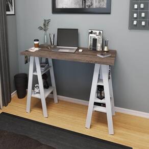 A mesa escrivaninha MB 1034 possui estrutura em MDP 15mm e acabamento em pintura UV. Possui 4 prateleiras que suportam 5kg cada. Tampo em MDP 25mm. Produto suporta até 25kg. Conteúdo da embalagem: móvel, ferragens e manual de montagem. A fixação das peças e/ou acessórios é feita por parafusos. Para uma limpeza mais efetiva, utilizar apenas pano macio umedecido e sabão neutro. Não utilizar produtos abrasivos. Garantia de 03 meses contra defeitos de fabricação. Medidas do produto (AxLxP): 78x135x60cm. Peso do produto: 22kg.