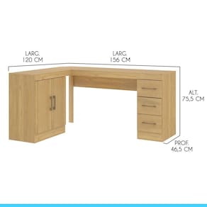Dimensoes: Altura: 75,5 cm Largura Lado Maior: 156 cm Largura Lado Menor: 120 cm Profundidade: 46,5 cm Peso: 45,5 kg