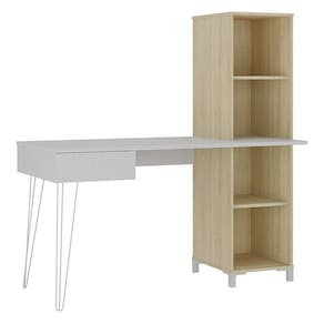 Transforme seu espaço com a elegante Mesa Escrivaninha com Estante Orizon A06 Terrazza/Carvalho, da Mpozenato, que une estilo e funcionalidade!
