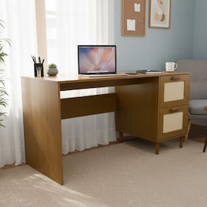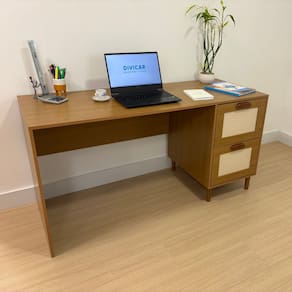 Seja para estudar ou trabalhar, esta mesa Divicar ajudará você a criar um ambiente confortável e adicionar ordem e funcionalidade às suas horas produtivas. Sua superfície servirá não apenas como suporte, também permitirá que você tenha recursos na ponta dos dedos para facilitar suas tarefas. Produto Montado: Sim Acabamento do Tampo: Pintura UV Acabamento dos Pés: Pintura Acompanha Manual de Instalação: Sim Ambiente Principal: Escritório codigo_ean: 7900288303707 Complexidade da Montagem: Baixa: pode ser montado por uma pessoa sozinha Cor: Angelim Cor da Base: Marrom Cor do Produto: Angelim Cor do Tampo: Bege Dobrável: Não Escala de Brilho: Fosco Espessura do Tampo: 15 mm Formato: Retangular Gaveta com Chave: Não Itens Inclusos: 1 Escrivaninha e Kit Ferragem Lado de Montagem: Direito Linha ou Coleção: Campo Manual de Montagem e Instalação: https://product-hub-prd.madeiramadeira.com.br/272425896/documents/44227195-37bd-44eb-9904-3cebc4d895c43352153306917679614470844.pdf Marca: Divicar Móveis Material da Estrutura: MDF Material do Puxador da Gaveta: Madeira Maciça Material do Tampo: MDF Material dos Pés: Madeira Maciça Material Principal: MDF Modelo Infantil: Não Necessita Montagem: Sim Origem do Produto: Nacional Pés com Regulagem de Altura: Não Pés Reguláveis: Não Peso: 35,5 kg Peso Máximo por Gaveta: 5 kg Posição da Gaveta: Lateral Possui Acabamento na Parte de Trás: Não Possui Borda Arredondada: Não Possui Caixa de Tomada: Não Possui Espelhos: Não Possui Estante: Não Possui Gaveta para Pasta Suspensa: Não Possui Gaveteiro: Sim Possui Passa Cabos: Não Possui Porta Objetos: Sim Possui Prateleiras: Não Possui suporte para CPU: Não Possui Suporte para Teclado: Não Possui Vidro: Não Quantidade de Gavetas: 02 Gavetas Recomendações de Uso, Manutenção e Limpeza: pano úmidecido Sapatas Niveladoras: Não Sistema de Montagem: Parafusos e Minifix Suporta Até (kg): 50 kg Suporta Braço Articulado: Não Tipo de Corrediça da Gaveta: Metálica Telescópica