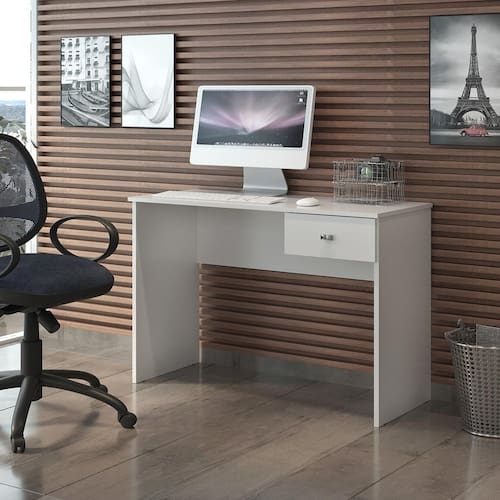 A Escrivaninha Compacta com uma gaveta é a solução ideal para quem busca um espaço funcional e organizado, mesmo em ambientes reduzidos. Seu design compacto oferece um tampo suficiente para trabalhar ou estudar com conforto, enquanto a gaveta proporciona armazenamento prático para documentos e pequenos objetos. Fabricada em MDP resistente, combina simplicidade, durabilidade e estilo, adaptando-se facilmente a escritórios, quartos ou home offices que precisam de uma solução eficiente e discreta. CARACTERÍSTICAS TÉCNICAS: - Estrutura em MDP de 15 mm - Acabamento Fosco cor Branco - Gaveta com Roldanas - Puxador tipo Ponto em Plástico - Suporta até 15 kg INFORMAÇÕES TÉCNICAS: Altura: 74,5 cm Largura: 90,5 cm Profundidade: 42 cm Peso: 17 kg INFORMAÇÕES ADICIONAIS: -ATENÇÃO: Não trabalhamos e não nos responsabilizamos pela montagem do móvel. Antes da montagem conferir se o produto está de acordo com o que comprou, produto montado e danificado pela montagem não será aceito troca. -As imagens ambientadas são meramente ilustrativas e podem apresentar itens que não compõe o produto. As cores do produto podem variar de acordo com o monitor, a iluminação do ambiente ou sua percepção visual. -Limpeza: Deve ser feita com pano macio e seco ou levemente umedecido com água e sabão neutro. Não devem ser utilizados abrasivos como palha de aço e objetos cortantes. Garantia para defeitos de fabricação conforme Código de Defesa do Consumidor.