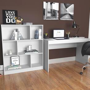 Mesa e Estante B28, práticos e modernos, ideais para acompanhar seu dia a dia no trabalho ou estudos! Com estruturas MDP de 15 mm e acabamento UV fosco/Brilho. Possui mesa escrivaninha com tampo amplo e espaçoso (Suportando até 20 kg distribuídos) e estante multiuso com nichos para armazenamento (Suportando até 5 kg cada). Pensado para acompanhar sua rotina com praticidade. NÃO ACOMPANHA ELETRÔNICOS NEM DEMAIS DECORAÇÕES. Este produto será entregue em 2 volumes.