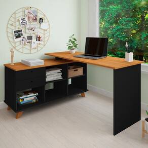 Com a Mesa Escrivaninha em L 2 Gavetas e Nichos Golden A06 Freijó/Preto, da Mpozenato, a sua rotina no escritório ou home office será muito mais produtiva e agradável.