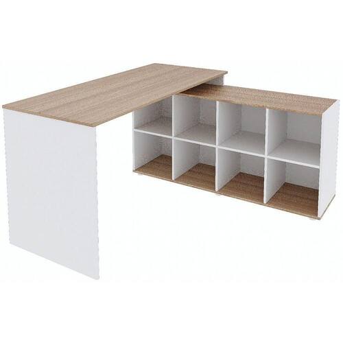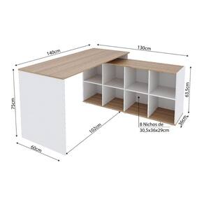 Mesa Escrivaninha em L 8 Nichos Barcelona Branco/Montana - Uma mesa office com espaço para trabalho e para organizar seus documentos