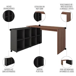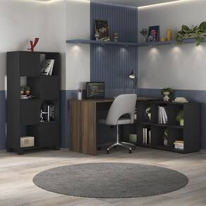 A Mesa Escrivaninha em L Eron e Estante Livreiro Maly A06 Ipê/Preto, da Mpozenato, possui um design moderno sendo perfeita para o seu home office.