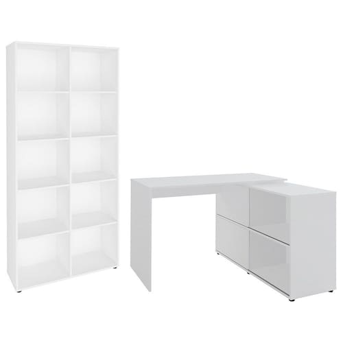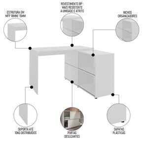 A Mesa Escrivaninha em L Link e Estante Livreiro 90x187cm Lean A06 Branco, da Mpozenato, é a dupla perfeita para criar o seu home office.