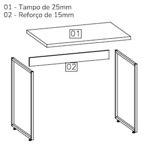 Materiais: Estrutura em MDP (tampo 25mm/ reforço 15mm) e base em Metal.
