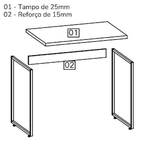 Materiais: Estrutura em MDP (tampo 25mm/ reforço 15mm) e base em Metal.