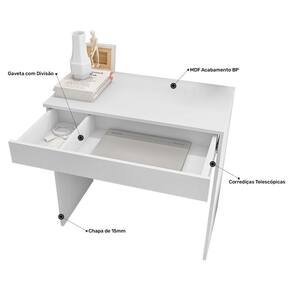 Você não precisa encher o seu cômodo de coisas para conquistar um cantinho de estudos ou montar seu Home Office Completo. Pelo contrário, basta apostar nos móveis certos e compactos para que o seu desempenho ganhe uma grande aliada: a organização! Com a Escrivaninha Loft os seus objetos pertinentes à rotina ficam dispostos no tampo, além de itens decorativos que deixam o cômodo mais receptivo. Produzida em MDF de 15mm possui acabamento BP e ainda conta com 01 Gaveta com corrediças telescópicas. Já o visual minimalista e design discreto ajuda a ambientar o espaço de maneira e agradável para o dia a dia. Agora é só encontrar uma cadeira para dar aquele match perfeito com a sua mesa. Compre já!